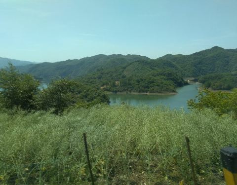 这里风景真的很美,群山环绕,梅山水电站的一座大坝拦着,水库里的水很清澈,在水里划船泛舟,顿时能放下心中一切烦恼