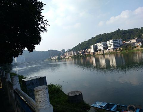 这里风景真的很美,群山环绕,梅山水电站的一座大坝拦着,水库里的水很清澈,在水里划船泛舟,顿时能...