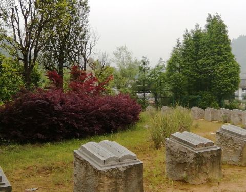 在维景温泉侧门马路的斜对面。石牌坊前路况不好,坑坑洼洼全是泥巴。园内一座半途而废的博物馆
