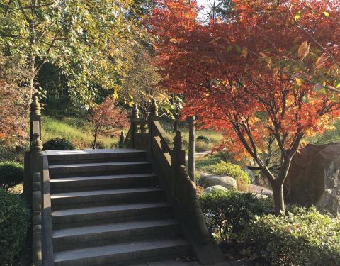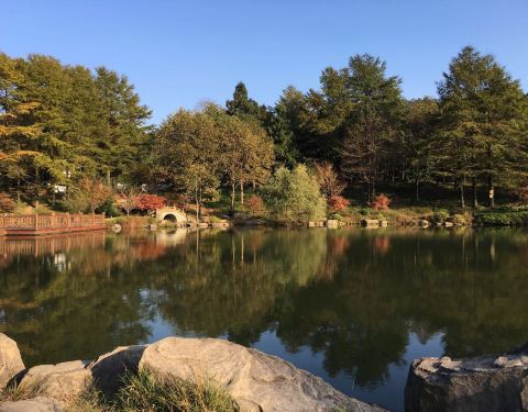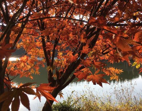 风景优美,穿过小道来到这里感觉世外桃源。枫叶渐变,波光粼粼。很值得游玩~