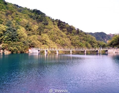湖面不大,因是堰塞湖,在800米海拔上有这么个湖,也不容易。湖边绿化很好,人工建了座小桥可以走上去拍照。湖水不是很清,但在蔚蓝天空的辉印下,拍出照片的水面是蓝色的。围绕湖边走一圈,感觉有点小资!边上有...