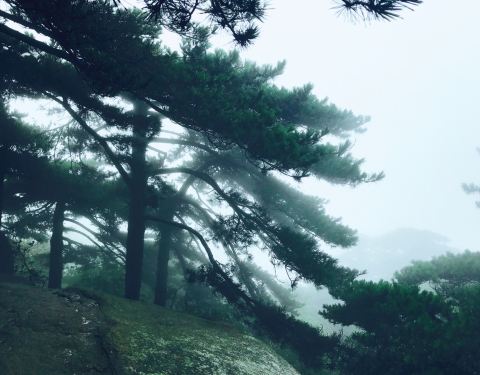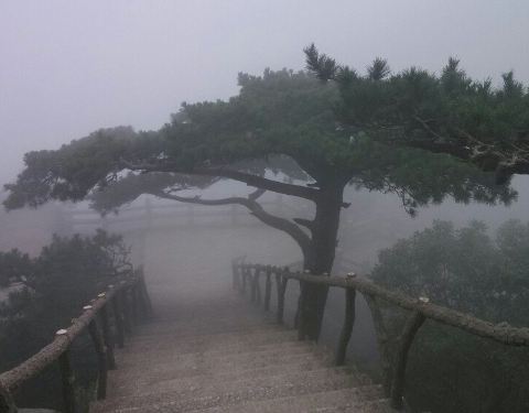 仙境一般的感觉。虽然山上有雾,但是影影绰绰的还是觉得很美。天池峰是有一潭水的。水已经结冰了虽然山上有雾,但是影影绰绰的还是觉得很美。仙境一般的感觉。天池峰是有一潭水的。水已经结冰了。如果是春天秋天来可能更加美吧。