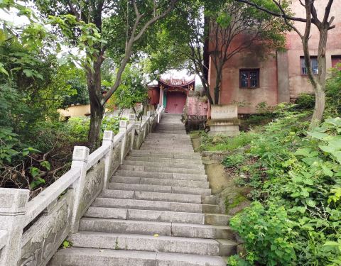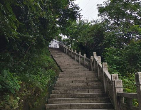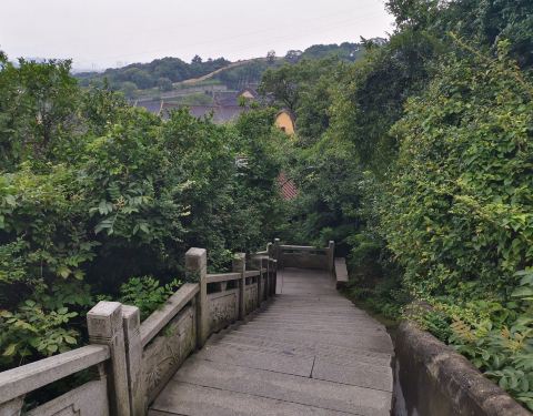 拾阶而上,至半山腰,远眺可观余姚全景。山不高,半小时许可登顶。