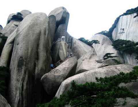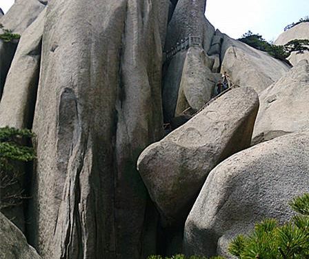 真的是很难爬啊,稍微走错一点感觉就会掉下去。大家都仅仅抓着旁边的栏杆,我们还拄着拐杖,几乎是手脚并用,用生命在爬啊,不过,还是觉得很好玩的,惊险刺激,很推荐。