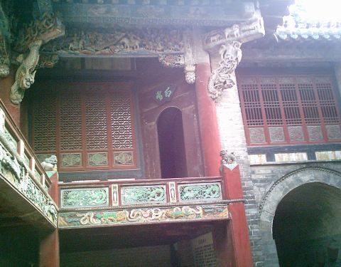 ...过最为漂亮的仿木石牌坊与他背后色彩绚丽的戏楼,往右手出口走,会看到张飞庙,占着非常小的一个院落