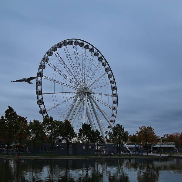 对岸的Habitat 67是蒙特利尔最具特色和最具创意的建筑,也是世界上最大的社区建筑之一。Habitat 67是由建筑师穆时•萨夫迪于1967年所设计建造的,也是当时1967年蒙特利尔世界博览会的主题之一。 Habitat 67是蒙特利尔最古怪的建筑,这里的每一间屋子都是单独预制建造的,之后再像集装箱那样以参差错落的形式堆积起来。建造之初其定位是面向中低收入阶层,为他们提供社会福利的廉价住宅,可现在却变成望尘莫及的高档社区。这种空间规划设计既包含了立方体坚固的特点,又表现了错综复杂的美学形态,同时保证了户户都有花园和阳台的要求,更兼顾了隐私性与采光性,表明了未来住宅人性化、生态化的发展方向。水边的摩天轮。回到街上,水鸟不时低低的掠过。