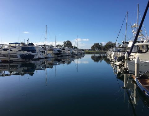 白天的岛看起来很美,周围的海湾停着很多的游艇。这个岛靠大桥连接着,我就住在对面的万豪,每天可以眺望