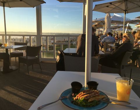 科罗拉多半岛和圣地亚哥市有一座长达3.5公里的巨大桥梁连成。 专程去酒店点了份晚餐坐看落日