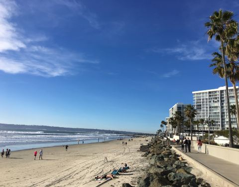 从中途岛号航母出来后通过传说中的通天大桥科罗拉多大桥后就可以到达,可以看到圣地亚哥城市的全景,因为是冬天去的,如果夏天去,沙滩上一定会看到比基尼美女的哦。