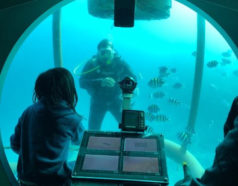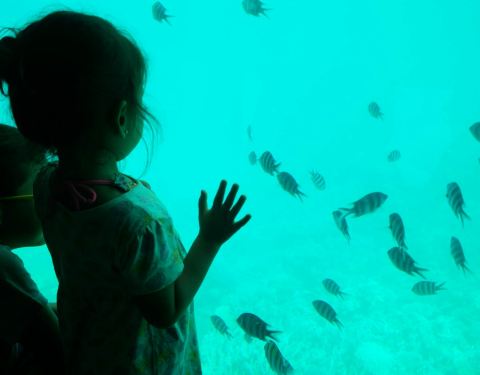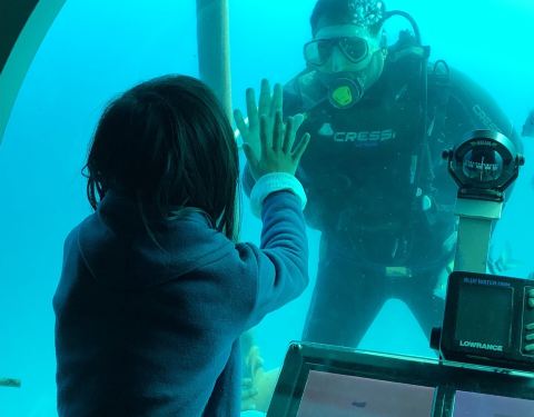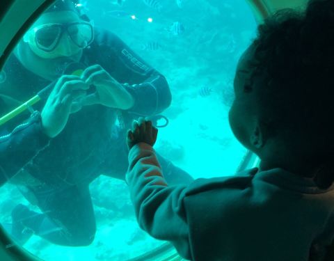 ...了[强]一位潜水员会伴随着潜水艇游走,并抓一些小鱼喂食大鱼,与艇内乘客互动交流,令孩子们很兴奋
