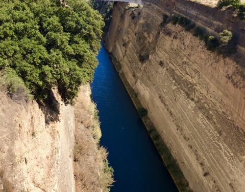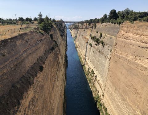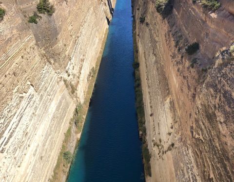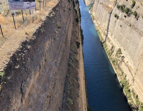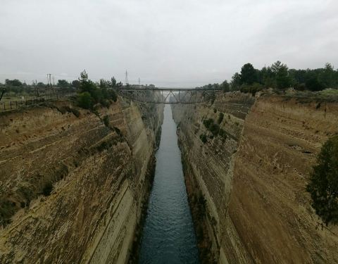 科林斯在希腊的伯罗奔尼撒半岛,是希腊的一座历史名城,可以从雅典驱车前往,大约2小时左右的车程。这条运河是世界第三大人工运河,,导游告诉我们这是世界上开凿最深的运河,崖壁高达80米上下。是免费的景点,春秋两季前往最适宜,从桥上看下去,很美,很壮观。