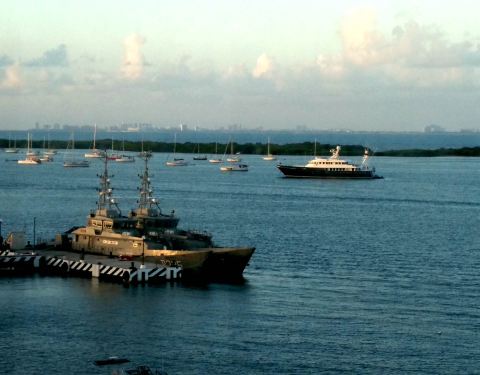 所以 女人岛 一日游,就变成了 女人岛 小半日游。。实力坑队友。。不过说实话,这个码头也太小了,仅停靠着一艘海盗船(不能坐的,仅供拍照),肉眼看根本分辨不出,还是多问问的好,好在 坎昆 这边是老美的度假胜地,路人基本上都会英语,终于能和别人顺畅的交流了,而不是只能看着别人说 西班牙 语然后傻笑。买好船票就只有在码头等着,顺便观赏 加勒比海 ,非常漂亮的蓝色,且层次丰富,果然,漂亮的海都长一个样子,丑的海是各有各的丑。这就是我们乘坐的快艇,空调巨冷,又让我想起以前去 东南亚 被空调支配的恐惧,如出一辙。三十分钟的船程浪还有挺大,登船前先把膀胱排空,随着风浪一上一下带来的失重感,尿意会很强。哈哈哈哈,是你吗,水冰月。