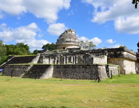 墨西哥奇琴伊察是古玛雅城市遗址,位于墨西哥尤卡坦州中东部,南北长3公里,东西宽2公里。“奇琴”意为“井口”。 高达29米的金字塔、墨西哥保存下来的最大的古球场、男子神庙、千柱大厅……组成古玛雅文化和托尔特克文化遗址。