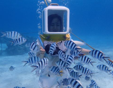 迫不及待想要赶紧换上泳衣,冲进海里玩耍~