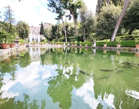在鱼池那边看上去是最佳的观赏点。它位于距离罗马一小时车程的蒂沃利小城
