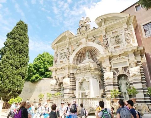 除了天空之城奇维塔迪班诺雷吉奥,罗马还有一座空中𡋾墅。它位于距离罗马一小时车程的蒂沃利小城。这里居高临下 可以俯瞰罗马平原,以不用机械动力引水的水利技术令人惊叹,被纳入了世界文化遗产之一。 𡋾墅是罗马帝王贵族于文艺复兴极盛世时期兴建 内里的奢华庭园设计规模宏大。整个庭园依山坡而建也被称为千泉宫。因为这里拥有大大小小500多处的喷泉,沿著小径和梯材也是潺潺流水 每个喷泉都经过设计师的精心巧妙建成。 其中最令人驻足的就是百泉路和海神喷泉。另外由管风琴喷泉风琴喷泉和海神喷泉,海王星喷泉组成的巨型喷泉也是亮点之一。在鱼池那边看上去是最佳的观赏点。