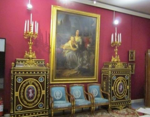 赤红宫殿内部装饰豪华,有大理石的雕像、镜子、威尼斯玻璃制的大吊灯,房间内还布置有丰富而华丽的壁画和制作非凡的雕像,身着世界民族服装的17世纪的布偶展。其内部更是一个美术馆,展出了很多凡·戴高、德尤拉等佛兰德画家的作品,还有其他包括奎多•雷尼的圣塞巴斯提诺和桂尔基诺的克利欧佩特拉的杰出作品。
