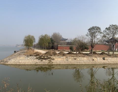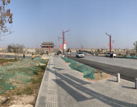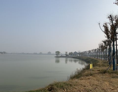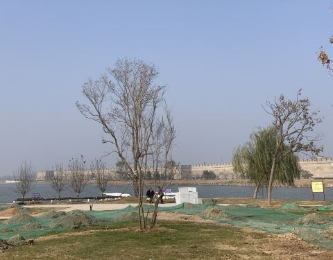 2019/12/9 第一次來到商丘,馬上去看一看古城,坐9號公車在南湖公園下車,但看不見車站牌,外面圍板,但可以進入,進入後看見古城的牌坊,左邊是八關齋,要門票,河的對岸是張巡祠,也要門票,有聯票30元,包括張巡祠、應天書院及南門城樓(東門下來)。 看完前面的兩個景點,返回牌坊處直接走到南門城樓,聯票包括上城樓,因為地方實在太大了,有景區車可乘坐,很多地方還在建設中,一路走向城樓看到兩旁都在忙著種樹,公園還未完全建好。