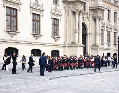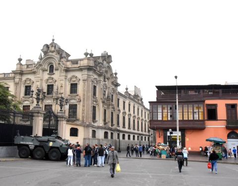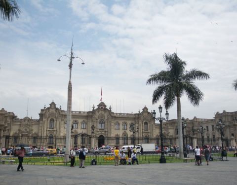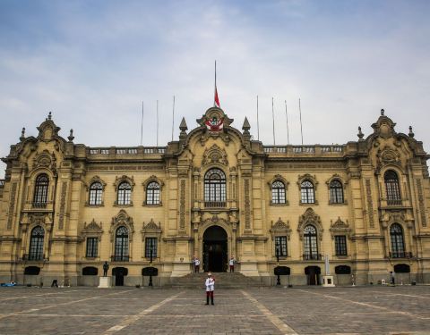 秘鲁总统府就位于利马的武器广场之上,它是一座标准的巴洛克式建筑,庄严而肃穆。每天会在武器广场上举行卫兵的换岗仪式,手续繁琐仪式花哨,吸引着许多游客前来观看,但是比较热门的一个项目。