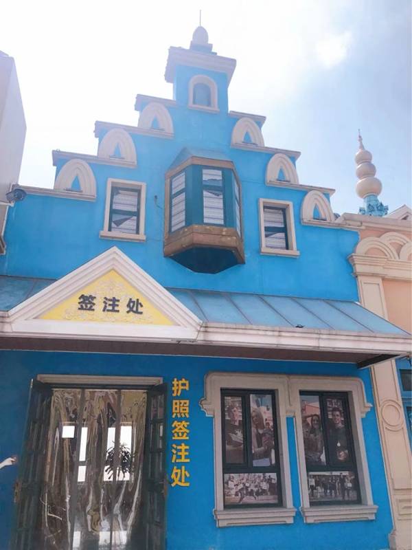 『护照』 第一页那里盖个章。同时会给你拍照。等你逛完回来的时候在不远处的小店里就是取相片的地方。1寸照片是免费的,贴在护照上的。8寸合照则是收费的,50元。