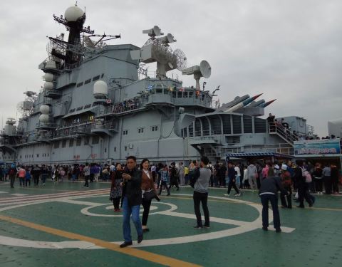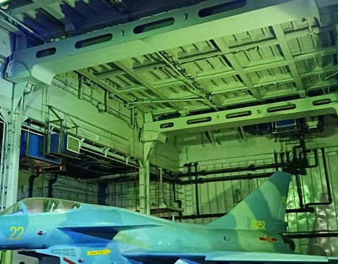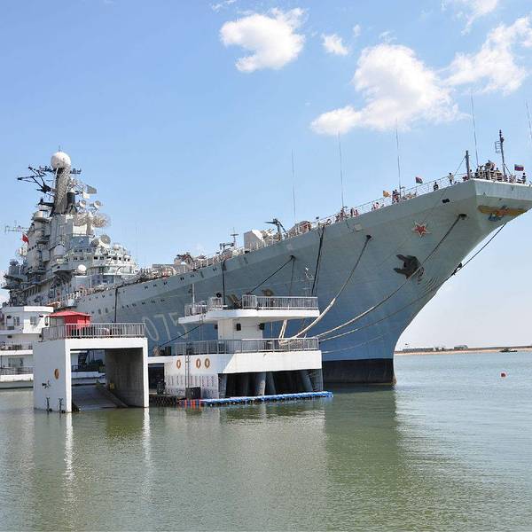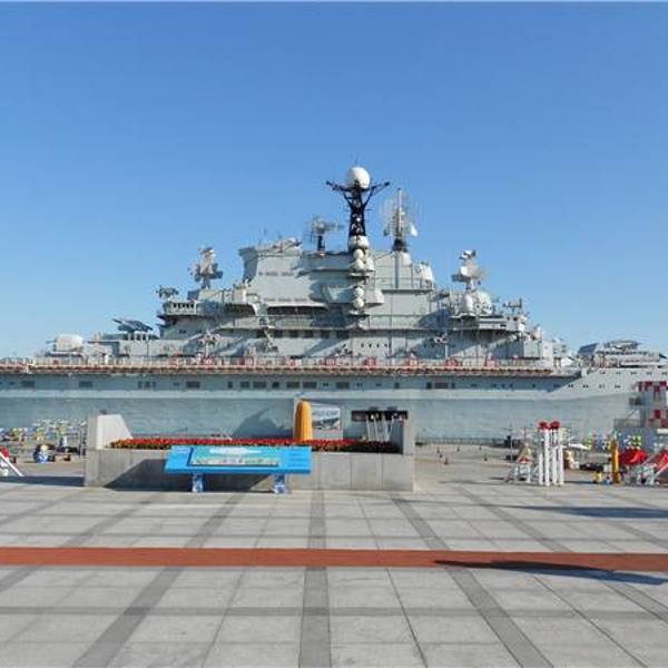 滨海航母展出的 『基辅』号是从前苏联买来的,于是围绕着这个主题整个公园都遍布了俄罗斯风情。 现在已经退役,完全是作为游人的游览地而存在的。里面展出了一些原来船员的生活用品,以及世界航母历史简介,其中有各个时期比较炫酷的船的模型。