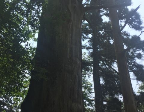 天目山分东天目山和西天目山,但是主要的景点都分布在西天目山。西天目山上又有很多景区,开发的最早的就是大树王景区。 大树王景区不明思意肯定大树王就是特色。从天目山景区入口到大树王景区要开半小时的车程,虽然没有云贵川的几十湾,但是如果司机速度开的快,也是要晕车的。 女儿上山坐车吐我一身,下山坐车又吐我一身,没办法,谁让我是抱着她的爸爸,再恶心也要抱着。 这里海拔都在1000米以上,因此冷杉,红衫,黄山松长的特别的好,树木高大挺拔,气势上还是非常的好看的。 大树王其实不是天目山最大的树,只是当时皇帝来到这里,看到了这棵大树,把它叫成了大树王。现在大树王其实已经挂了,只是鸟儿把杉树的种子又传播到了挂掉的那棵大树王里,大树王感觉重生了。 从景区入口处走到大树王路途还比较缓和,带娃的在山上走走,呼吸下天目山丰富的负氧离子,很不错的。