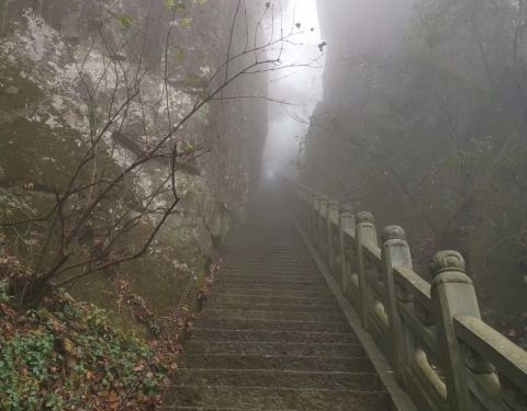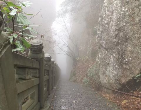 到了,起雾了 大树王景区 很巧的是,刚到山顶,开始起雾了,最美的时候。差不多半个小时大家都登上来后,这里已经一片茫茫什么也看不清了。