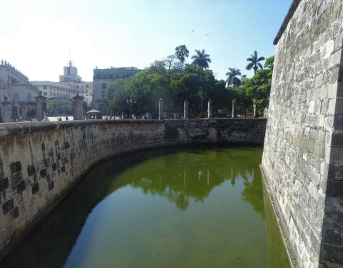 在这里已经成了一座博物馆,大家不妨进去参观一下这是哈瓦那一座有着400多年历史的坚固城堡,在城堡的四周,有像中国古城一样的护城河,在城堡的城墙上,放置着许多当年的旧时大炮,显得非常的威武。在这里已经成了一座博物馆,大家不妨进去参观一下。
