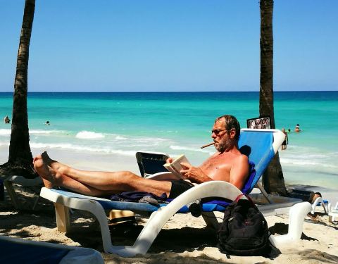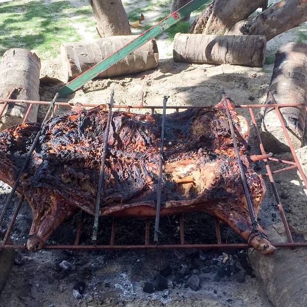 因为天公不作美,我们预约到巴拉德罗附近pig‘s bay浮潜的旅程取消了,这两天都是在酒店和沙滩瞎闹。这家酒店是24小时包吃包喝的,付房租就可以了。每天还有很多节目,让住客可以从早上玩到晚上的。住客入住时,就发一根白色手带,那样酒店范围内的餐厅,酒吧都可以随意享用了。沙滩上的原只烤猪!晚餐就会进入我们的肚子了。巴拉德罗是古巴著名的加勒比海度假胜地,超级长的白色沙滩最有名,这里的消费水平比古巴其他的地区都要高。巴拉德罗的白沙滩不算最漂亮,但我们在那里和一些加拿大人聊天,他们说这里是加勒比海地区最安全的白沙滩,所以,加拿大人每年都喜欢到这里避寒