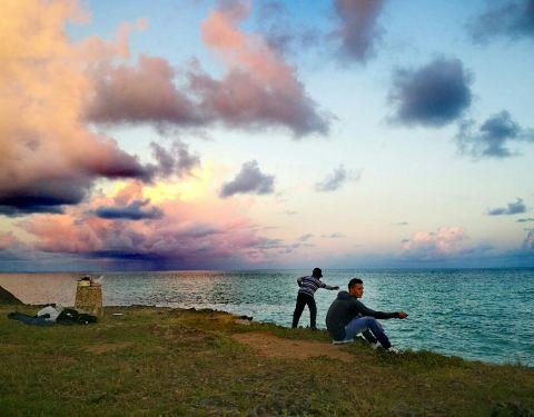 这是我见过最美的夕阳 整个海都被染成了娇艳的红色 但是不幸的是当天晚上巴拉德罗就发生了4级地震...