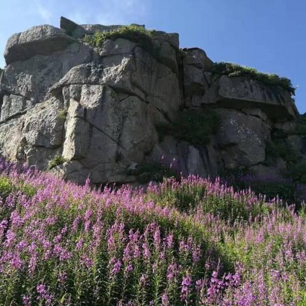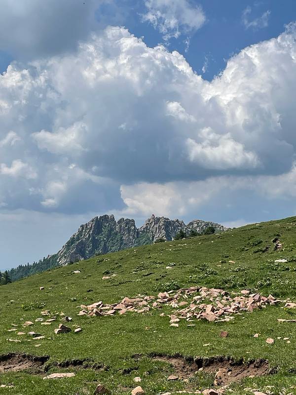 不过这个山顶草原景色不错,开阔视野,还有奇石流水,恰好细雨稍停,我们还发现了薄薄的彩虹