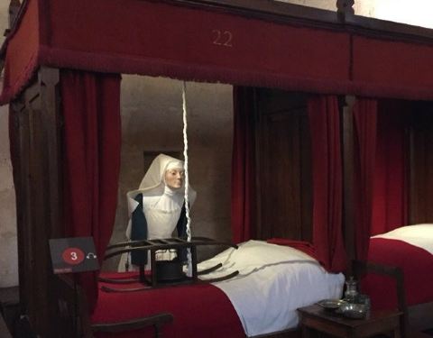 没想到这是一个非常大的医院,它里面的护理病房区很大,病床一张挨着一张的,里面还通过蜡像的形式来展示当时的护理工作,这个医院还有一个附带的酒店博物馆。