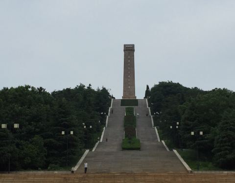 纪念碑距离茅山游客中心很近,走路过去用不了10分钟。纪念碑很高,樹立在300多级台阶上,加上他30多米的高度,在山上望着会十分壮观。