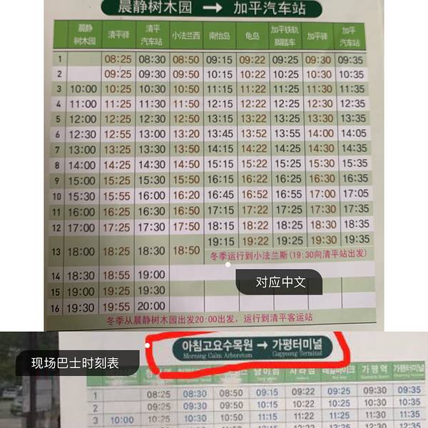 4️⃣如果你只游玩南怡岛,那么你就要选择加平汽车站下车哦分,会比较近南怡岛的,也是同样的京春线,京春线是先经过清平,再到加平站