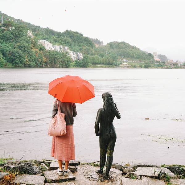 此时南怡岛的雨,下得一点儿也不浪漫。树林里的枫叶已经开始见红了,落叶稀疏散在草地上,没有了阳光的照耀,氛围似乎也少了些热闹。