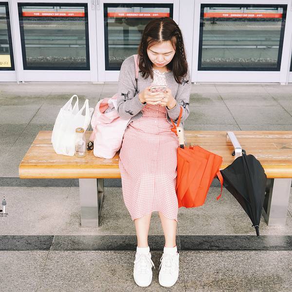 but,不小心被旁边的路人甲发现了,好尴尬~~~~转市郊京春线这一段的站点真的很多,害怕下错车,所以一直忙碌地刷新APP。此时的小哥一定是觉得这两个外国人看上去特别不靠谱吧,哈哈~