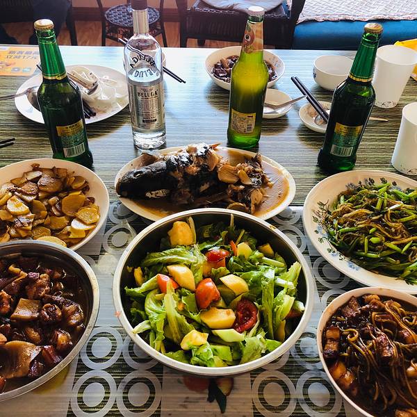 ...店很多,买菜买肉也很方便,各种调料,活鱼鲜肉,新鲜蔬菜,大家各展身手,一桌节日盛宴很快准备完毕吃过早饭我们就去采购食材,不大的县城商店很多,买菜买肉也很方便,各种调料,活鱼鲜肉,新鲜蔬菜,大家各展身手,一桌节日盛宴很快准备完毕。相对简单的晚饭,主食肉饼