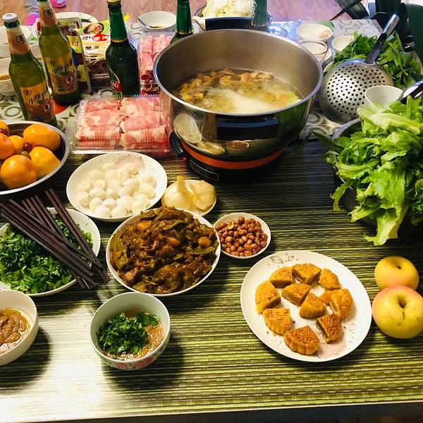 ...店很多,买菜买肉也很方便,各种调料,活鱼鲜肉,新鲜蔬菜,大家各展身手,一桌节日盛宴很快准备完毕