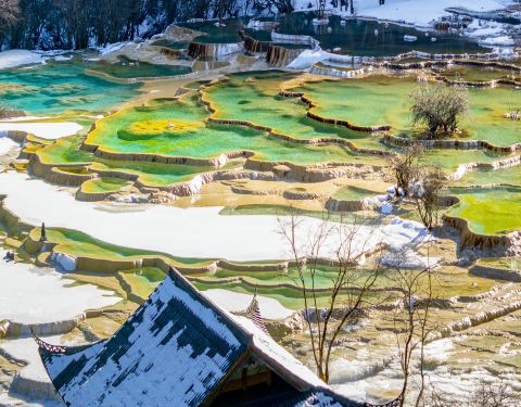 • 阿坝藏族羌族自治州松潘县平松路附近黄龙国家地质公园内