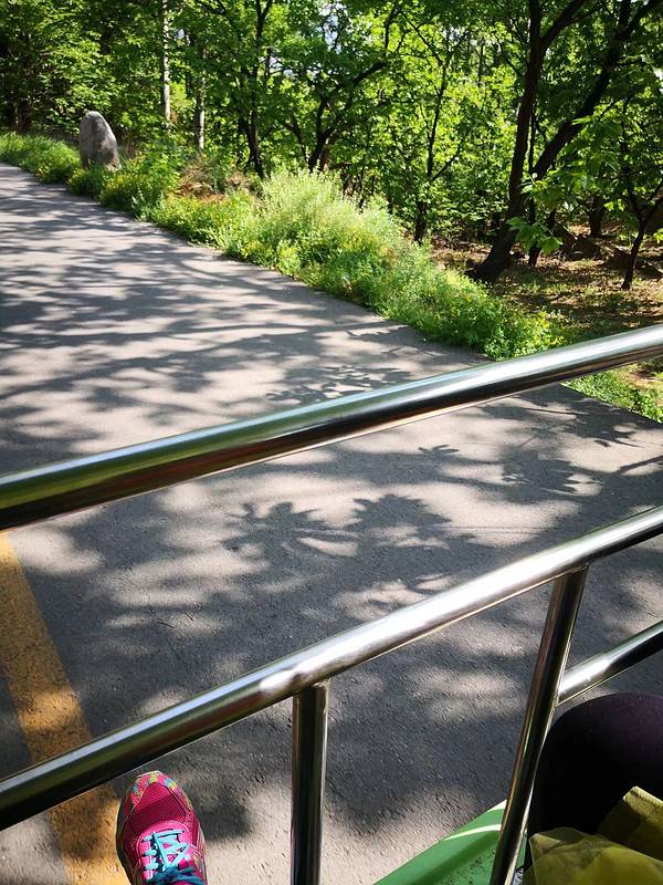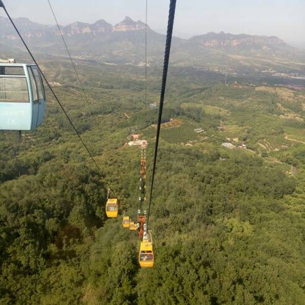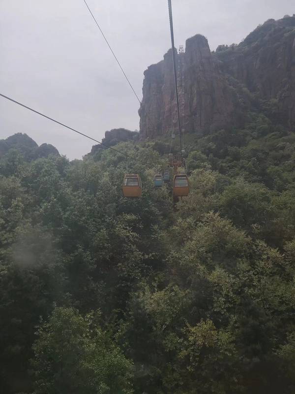 早晨山里坐观光车,还有点冷。缆车竟然有一段也是垂直的!真是不嫌弃沉啊!有体力的话,建议爬到山顶!过瘾