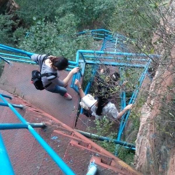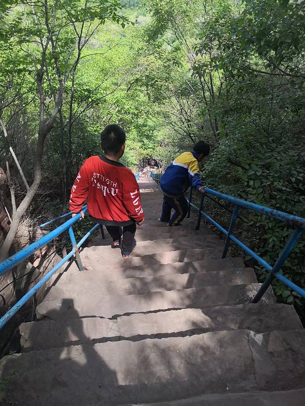 六至十岁!!!!满山栗子树啊!!!秋天的时候再来一次吧哲哲爬了一半,就返回了。啊!我爬到山顶了!无穷无尽的台阶……纯爬!练胆峡好几处都将近垂直的楼梯。