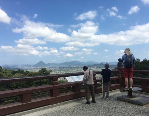 金刀比罗宫地处琴平山腰,山脚有金仓川缓缓流动。琴平的各个温泉集中在金仓川与琴平山之间。 从表参道有台阶也可走盘山公路到达金刀比罗宫。 金刀比罗宫旁有山道前往琴平山峰处的奥社严魄神社,在奥社的观景台可以远眺20km外的丸龟市与清晰可见的濑户内海大桥。 在奥社严魄神社处有山径通往龙王神社,看了看是老山道很少维护的样子没敢走。 这时间也就差不多准备下山去品尝乌冬面了。 据说这里是乌冬面的发源地。