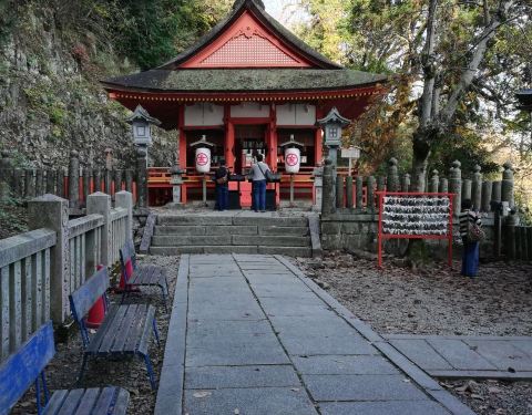 从市区过去还是蛮远的呀。而且要达到山顶需要走几百个台阶,还是非常累的。身上的棉袄据说是很灵验的,里面也有不同红色的鸟居哦,