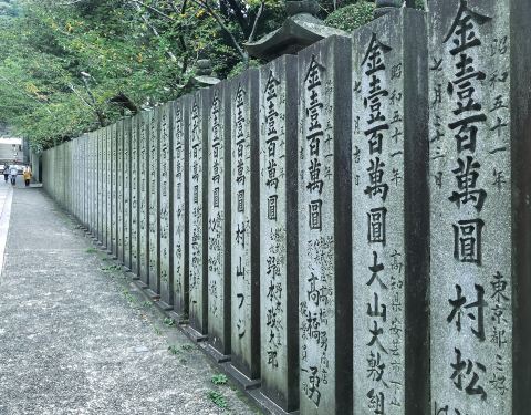 金刀比罗宫被日本人誉为“一生一定要参拜一次”的神宫有两个原因:一是金刀比罗宫是海上交通的守护神,而日本作为岛国,这个交通守护神当然一定是要去参拜的;二是那极长的参拜之路,一共1368个台阶,非常考验参拜者的体力和诚意。在表参道上能够看到金刀比罗犬的雕像,这是很多腿脚不便的人自己没办法亲自前去参拜,会派出家犬代为参拜。在小狗的脖子上挂上一个小袋,里面放入香油钱和路费,请前往四国方向的旅人带着一路前行。