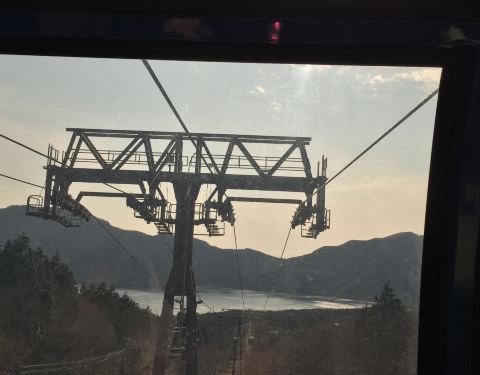 箱根的登山缆车还是很方便的,比较节省体力的箱根的登山缆车还是很方便的,比较节省体力的。全车是适应山的坡度,趴在山上的就一直按照那个很陡的坡度上去下来,车内座位从低到高,像在扶梯上安装的一样,有意思。