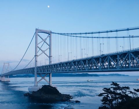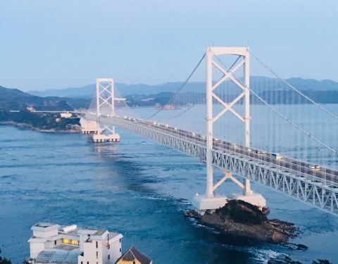 鸣门海峽,是日本本州與四国间之內海海峽,当中有鸣门大橋為之贯通,大橋壮观無比,於呜门公园之数个观景台可分别赏覽大橋多角度之雄姿,而大橋中又有渦之道可使遊人观赏鸣门之旋渦,非常值得参观。