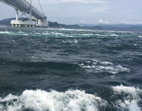 渦潮観潮船 先是坐在水下的客舱里面等着游艇⛵️开到鳴門大橋桥下 然后船会尽可能的开到可以接近漩涡的最近距离 再让乘客爬到三楼甲板上面看个两分钟…最后掉头返航