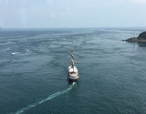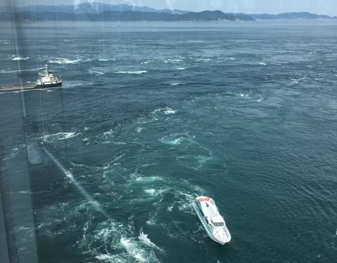 ... 然后船会尽可能的开到可以接近漩涡的最近距离 再让乘客爬到三楼甲板上面看个两分钟…最后掉头返航渦潮観潮船 先是坐在水下的客舱里面等着游艇⛵️开到鳴門大橋桥下 然后船会尽可能的开到可以接近漩涡的最近距离 再让乘客爬到三楼甲板上面看个两分钟…最后掉头返航