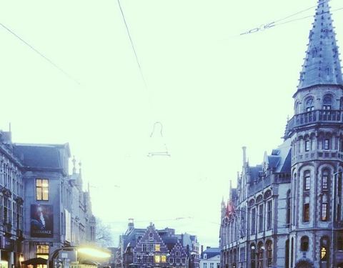在根特钟楼旁边,哥特式建筑,被大火烧毁过两次