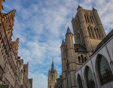 ...的建筑结构,这里也是根特的非常著名的景观,教堂看起来非常的重要的,教堂也属于比较重要的一个场所